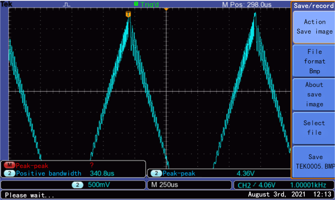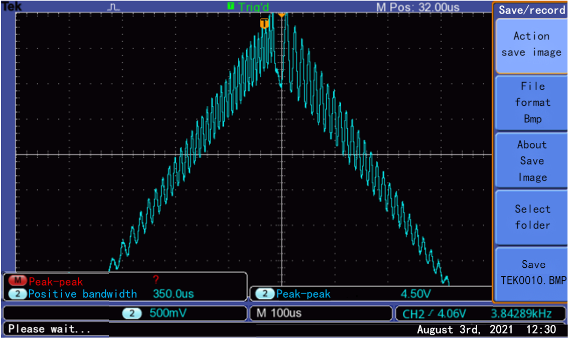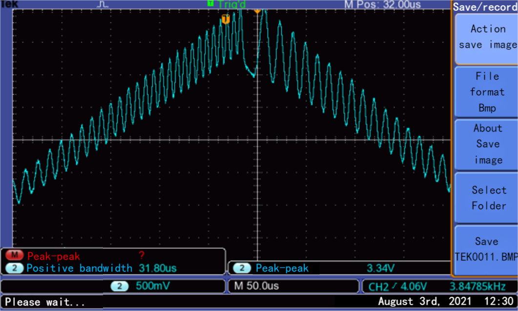 5. Turn on the laser and the signal generator (triangle wave modulation, frequency 1KHZ, voltage amplitude 500mW)