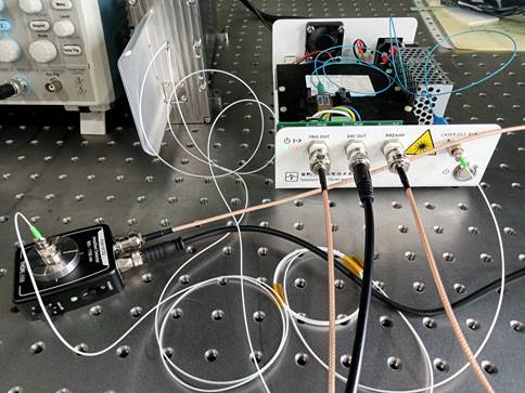The control software on the computer is used to adjust the current and temperature to tune the wavelength, so that the laser can scan a certain wavelength range and the output wavelength covers the absorption peak of the gas. The phase-locked amplifier provides a high-frequency sinusoidal modulation signal, so that the laser output frequency is sinusoidally modulated. The light emitted by the laser passes through the gas absorption cell and enters the preamplifier circuit at the PREAMP end through the detector. It is then modulated and demodulated by the phase-locked amplifier and sent to the oscilloscope channel 2 through the DAC OUT analog output end to display the second harmonic signal. During the whole process, we adjusted various parameters in the software and observed the output waveform at the same time to optimize the output waveform.