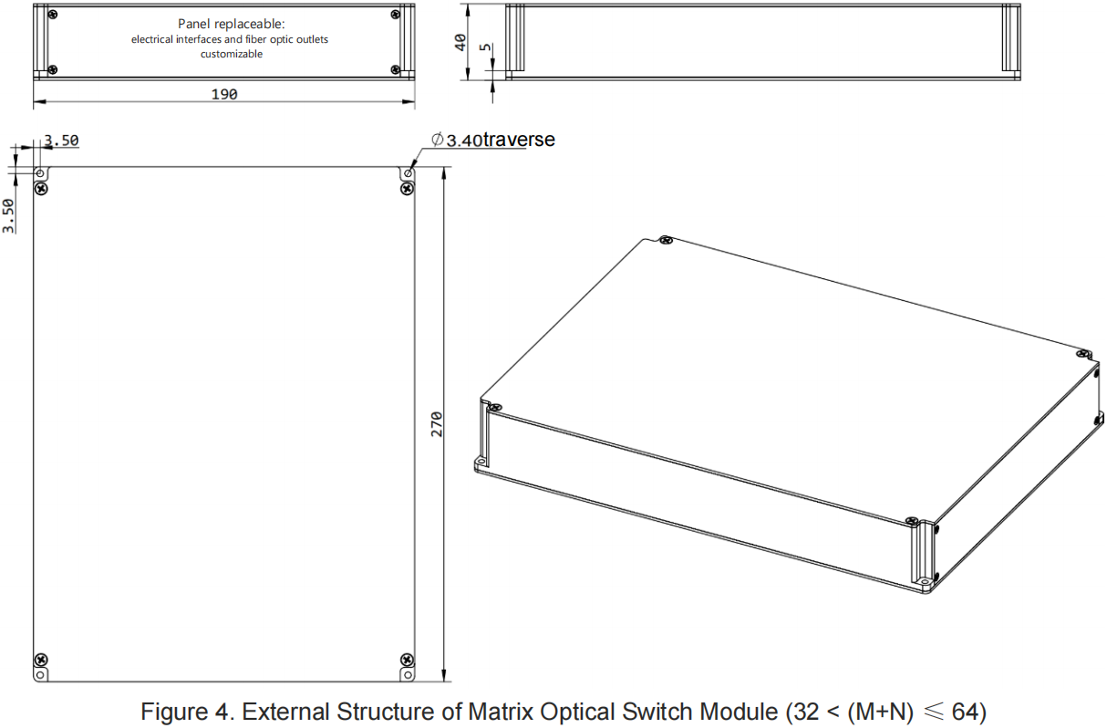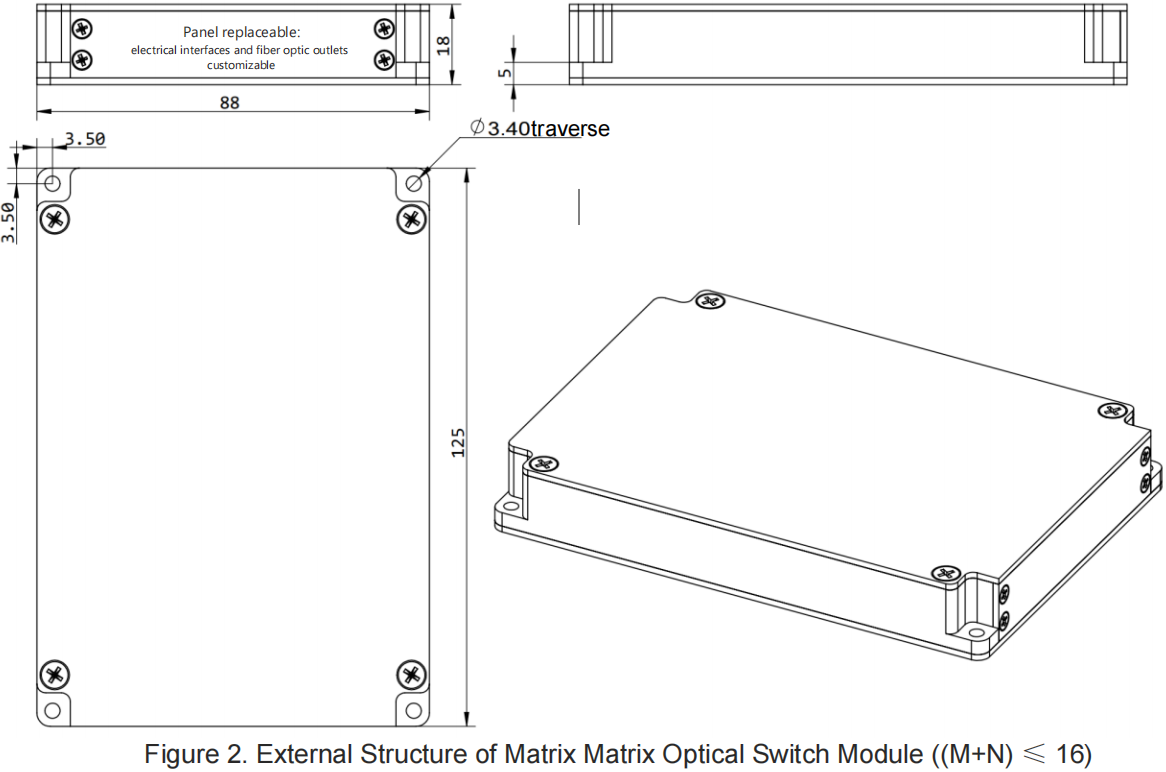 As shown in Figure 1, the block diagram of the M×N optical switch matrix optical path is composed of M 1×N MEMS optical switches and N 1×M MEMS optical switches in cascade, which can realize arbitrary switching of M optical signals to N optical signals. The optical switch matrix provides non-blocking and fully transparent optical switching, making it an ideal solution for telecommunications, data centers, network security, and laboratory/production network operators. It has the capabilities of flexible and reliable remote resource allocation and rapid path reconfiguration.