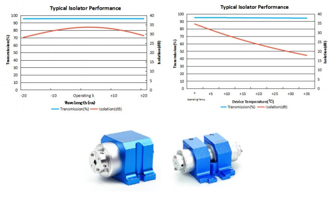 Free-space isolators can be divided into two types: polarization-dependent and polarization-independent. The polarization-dependent isolators, also known as Faraday isolators, are mainly composed of three parts: a polarizer, a Faraday rotator, and an analyzer (set at 45° to the polarizer axis). Polarization-independent isolators typically consist of a birefringent crystal (or polarizer), a Faraday rotator, and a half-wave plate. These are usually used in fiber lasers to effectively maintain the stability of the optical system. Made with high-quality magneto-optic crystals, these isolators offer low absorption, high extinction ratio, and low loss, ensuring excellent and reliable performance. The peak isolation can reach up to 45dB, with an aperture size up to 45mm. The typical transmission rate can reach 95%, and all products are customizable according to customer requirements