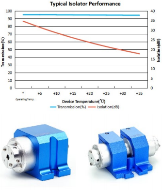 Free-space optical isolators can be divided into two types: polarization-dependent and polarization-independent. Polarization-dependent isolators, also known as Faraday isolators, consist of three parts: a polarizer, a Faraday rotator, and an analyzer (which is oriented at a 45° angle to the polarizer's axis).Polarization-independent isolators primarily consist of a birefringent crystal (or polarizer), a Faraday rotator, and a half-wave plate. These are commonly used in fiber lasers and are effective at maintaining the stability of optical systems. These isolators use high-quality magneto-optical crystals, offering low absorption, high extinction ratio, and low loss. The products feature excellent and reliable performance, with a peak isolation of up to 45 dB, a maximum aperture of 45 mm, and typical transmission values reaching 95%. Customization is available for all products