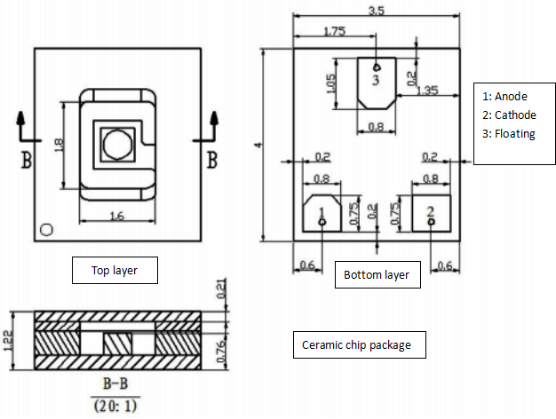Silicon Avalanche Photodiode | APD-SI-905-0.23-LCC3 | Spectral response range: 400-1100nm Peak response wavelength: 905nm Photosensitive surface diameter: 0.23mm Package: LCC3 |