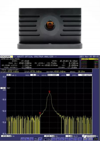 This experiment uses the 4.56um high-power desktop DFB-QCL quantum cascade laser combined with an MCT mid-infrared photodetector to test the N2O gas (1000ppm) in the 5-meter optical path narrowband broadband gas cell.