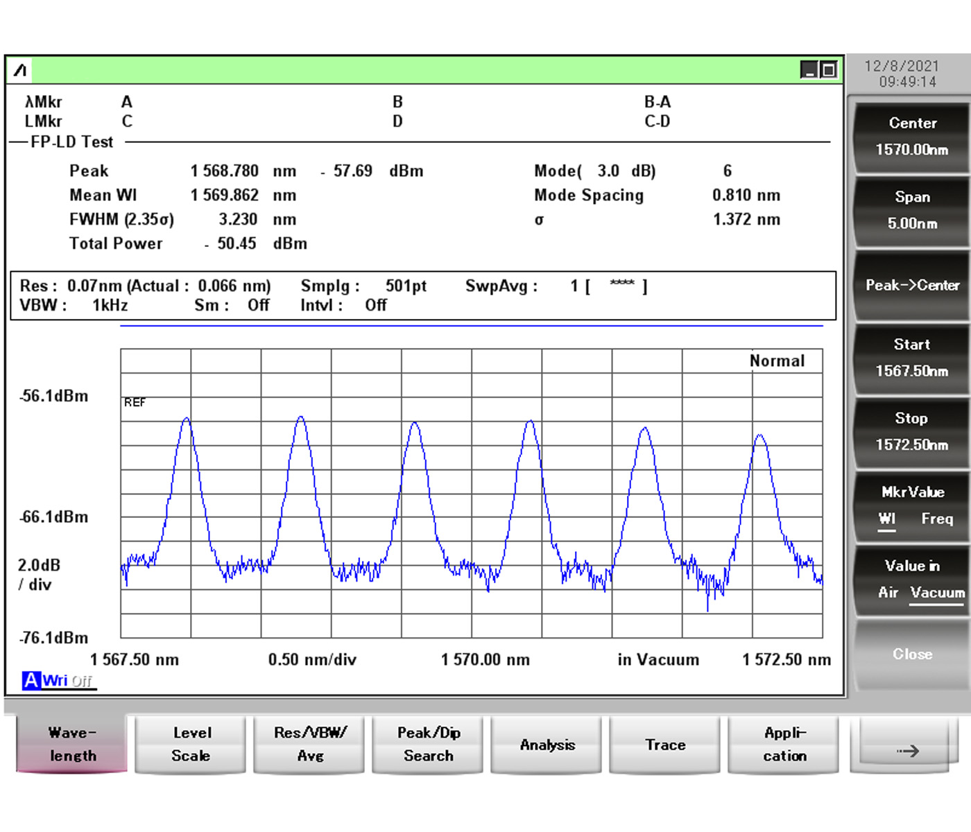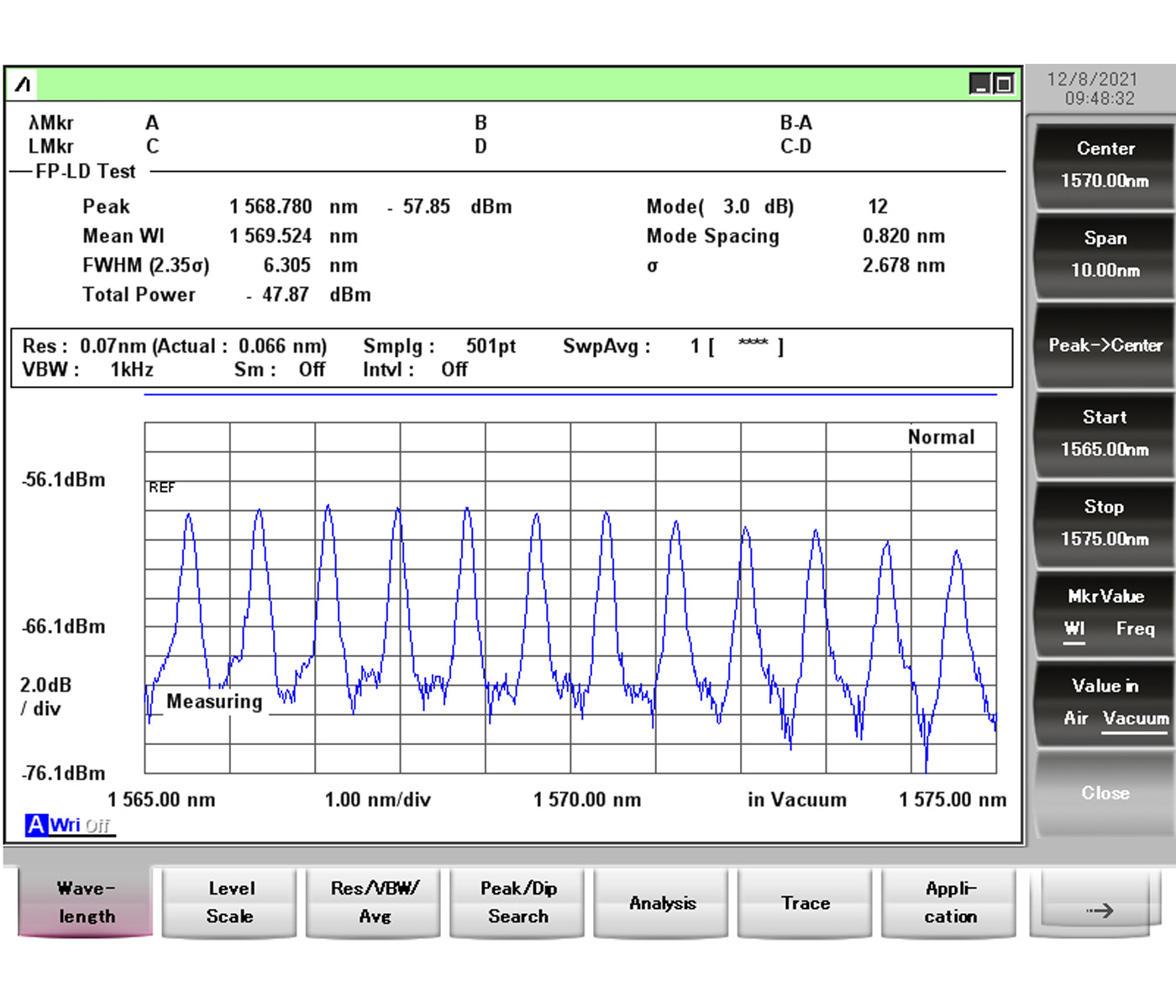 Channel peak | Nm | None (or select a certain ITU wavelength) |